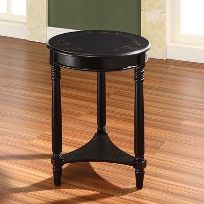 Dover Accent Table in Black7004 Features: -Material: MDF.-Fashionably styled. Color/Finish: -Turned leg, round accent table with one shelf is expertly finished in black with hand painted detail. Assembly Instructions: -Assembly required..../ Dover Accent Table in Black / Round End Table